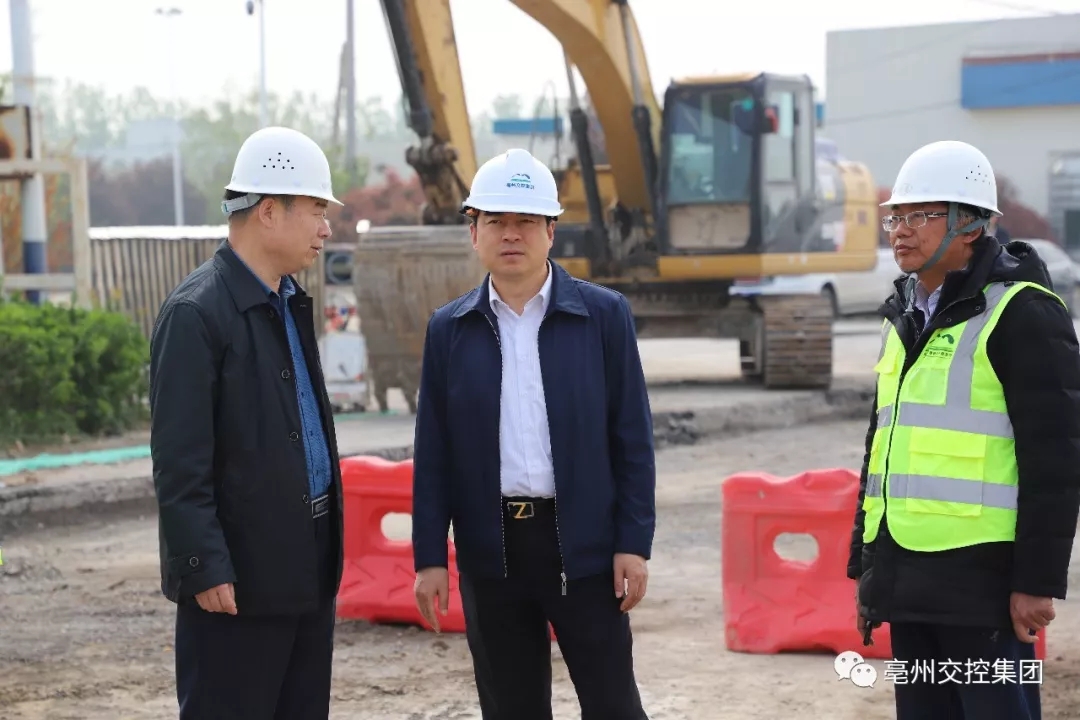 在省道307亳渦段收費站項目現(xiàn)場,李勝輝詳細詢問了該一級公路前期融資資金到位及還款情況,并聽取了項目工期計劃安排及工程質量的把控措施和檢測標準。