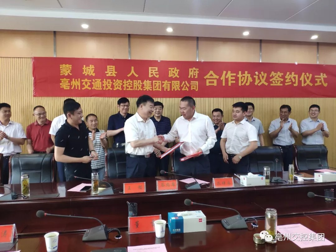 6月12日,交控集團(tuán)與蒙城縣人民政府在縣政府四樓簽訂戰(zhàn)略合作以及招商引資等協(xié)議。蒙城縣人民政府縣委副書記、縣長孔祥永,縣委副書記懷穎,副縣長史光榮,集團(tuán)黨委書記、董事長王鍇,財務(wù)總監(jiān)董雷及相關(guān)負(fù)責(zé)人出席簽約儀式。
