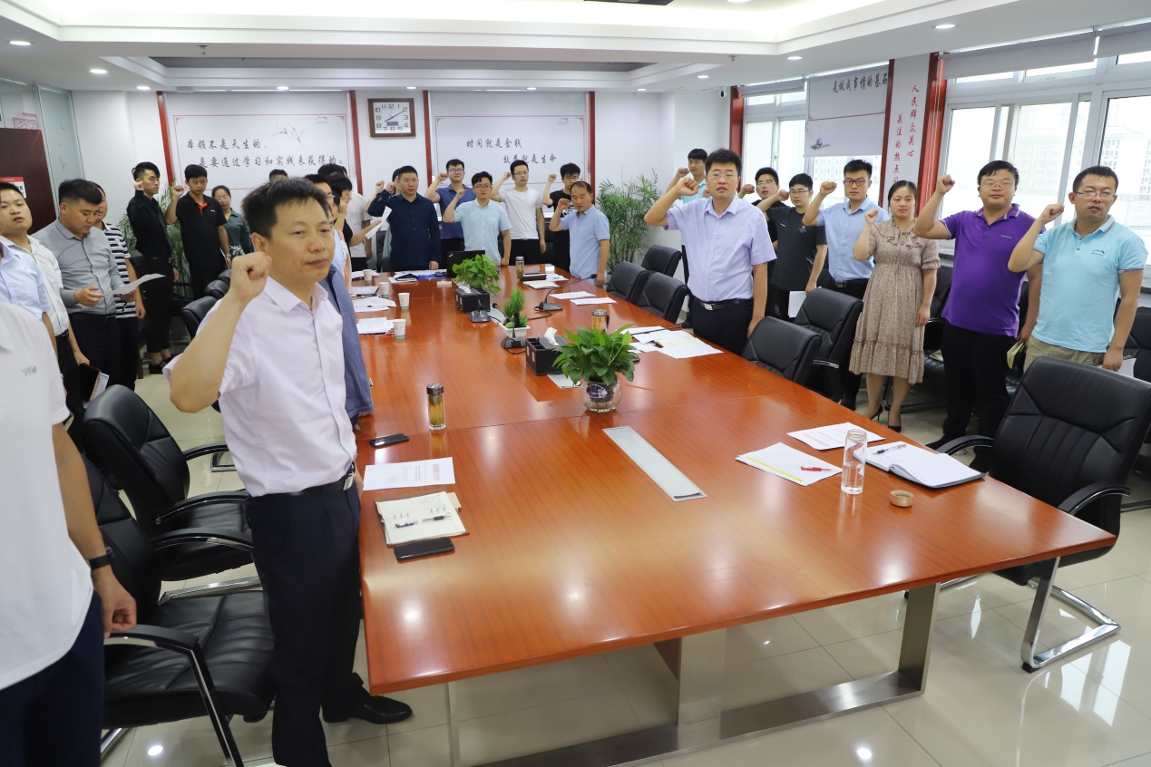 “我宣誓:牢固樹立安全發(fā)展理念,強化安全生產(chǎn)‘紅線意識’。做到安全生產(chǎn)責(zé)任到位、安全投入到位、安全培訓(xùn)到位、安全管理到位、應(yīng)急救援到位……”參會人員首先齊聲誦讀了交控集團安全生產(chǎn)宣誓詞。每一位宣誓者均飽含激情、聲音洪亮,誓言字字鏗鏘,無不表達(dá)了交控人保證施工安全生產(chǎn),捍衛(wèi)質(zhì)量的決心。