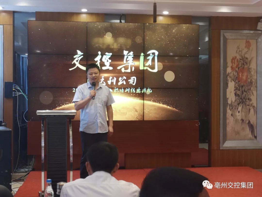 6月15日上午,通達(dá)利公司舉辦了新員工入職培訓(xùn)結(jié)業(yè)典禮,通達(dá)利公司董事長(zhǎng)、總經(jīng)理閆衛(wèi)中,副總經(jīng)理靳栓柱,市公路局直屬分局副局長(zhǎng)周勇,亳州電大創(chuàng)業(yè)指導(dǎo)中心主任陳迪明出席結(jié)業(yè)典禮。