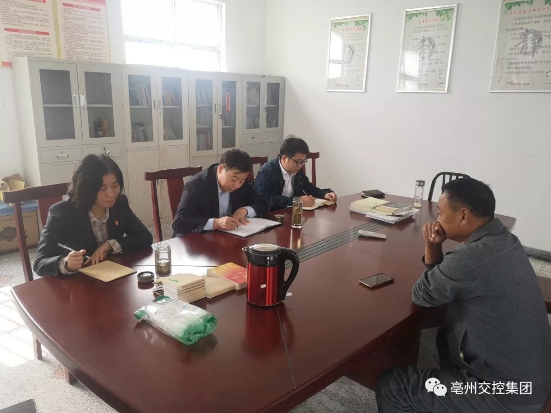 11月4日,交控集團(tuán)黨委書記、董事長王鍇深入利辛縣新張集鄉(xiāng)陽光村開展調(diào)研走訪,征集貧困戶微心愿,共商精準(zhǔn)脫貧下步工作。集團(tuán)組織人事部負(fù)責(zé)人王平、村兩委班子成員等參加扶貧調(diào)研。