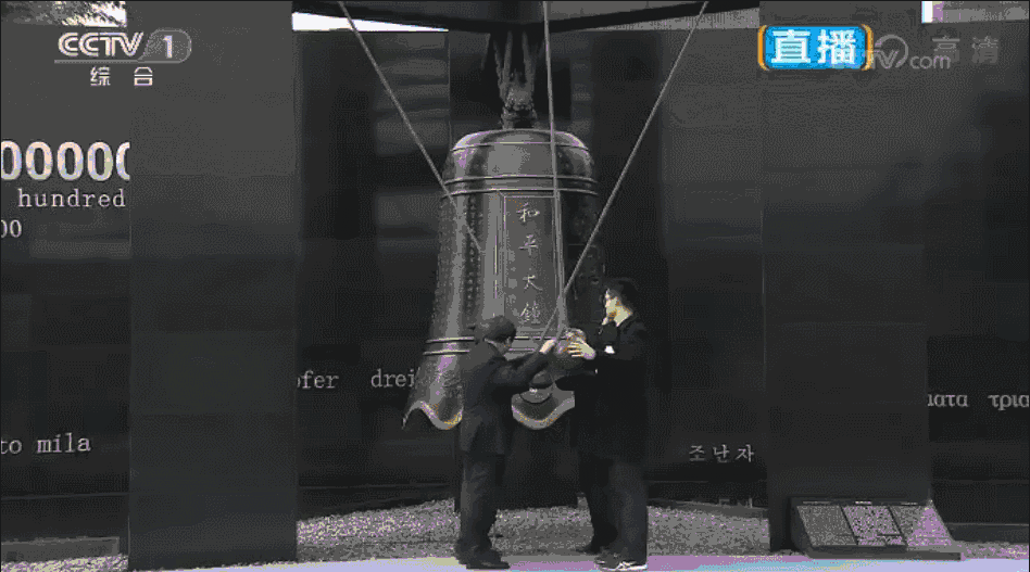 △公祭儀式現(xiàn)場(chǎng)撞響和平大鐘