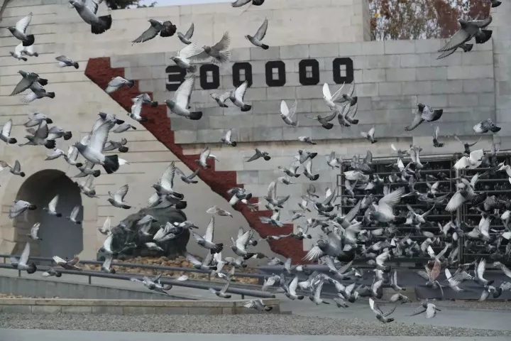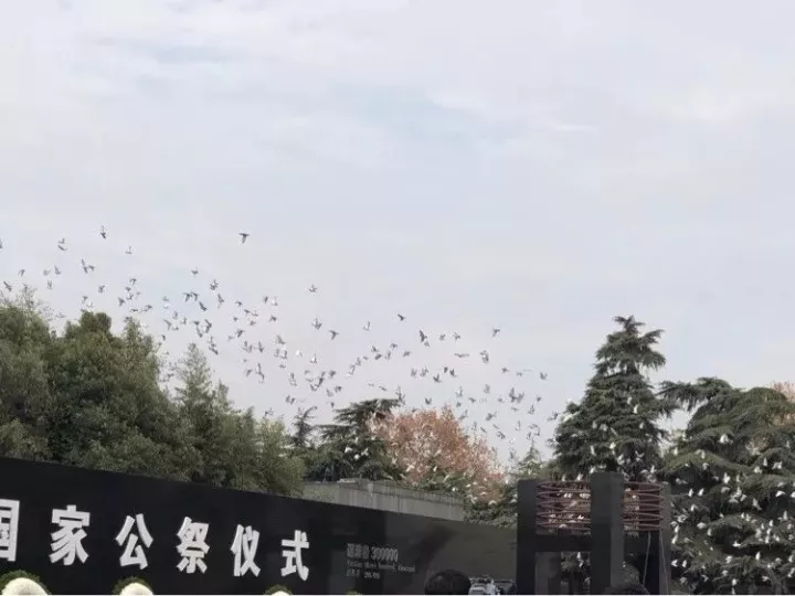 ▲ 南京大屠殺死難者國(guó)家公祭儀式現(xiàn)場(chǎng)放飛和平鴿。 新華社記者 龐興雷 攝