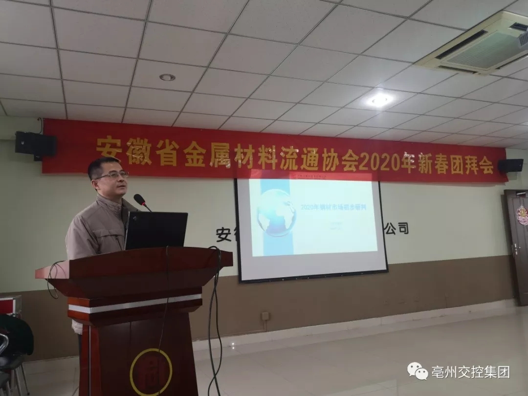 安徽省金屬材料流通協(xié)會(huì)堅(jiān)持“服務(wù)、溝通、監(jiān)督、自律”的辦會(huì)宗旨,發(fā)揮企業(yè)與政府之間的橋梁和紐帶作用,促進(jìn)安徽省金屬流通市場(chǎng)健康發(fā)展。團(tuán)拜會(huì)伊始,會(huì)長(zhǎng)汪齊虎向各參會(huì)人員表示熱烈的歡迎與由衷的感謝,隨后邀請(qǐng)馬鋼首席市場(chǎng)分析師夏仕卿為大家深入地分享了安徽鋼材2019年市場(chǎng)回顧及2020年展望。
