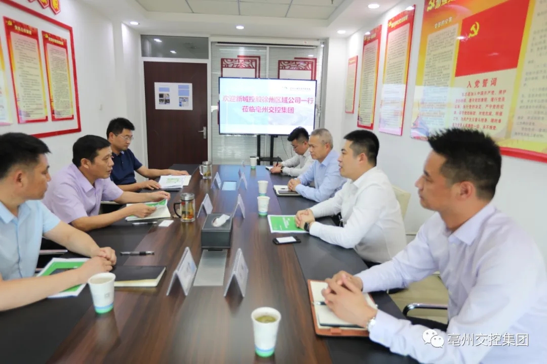 7月8日,新城控股徐州區(qū)域公司總經(jīng)理邵昶魁一行到我集團(tuán)洽談交流,集團(tuán)黨委書(shū)記、董事長(zhǎng)宋保眾,黨委副書(shū)記、總經(jīng)理劉超熱情接洽。