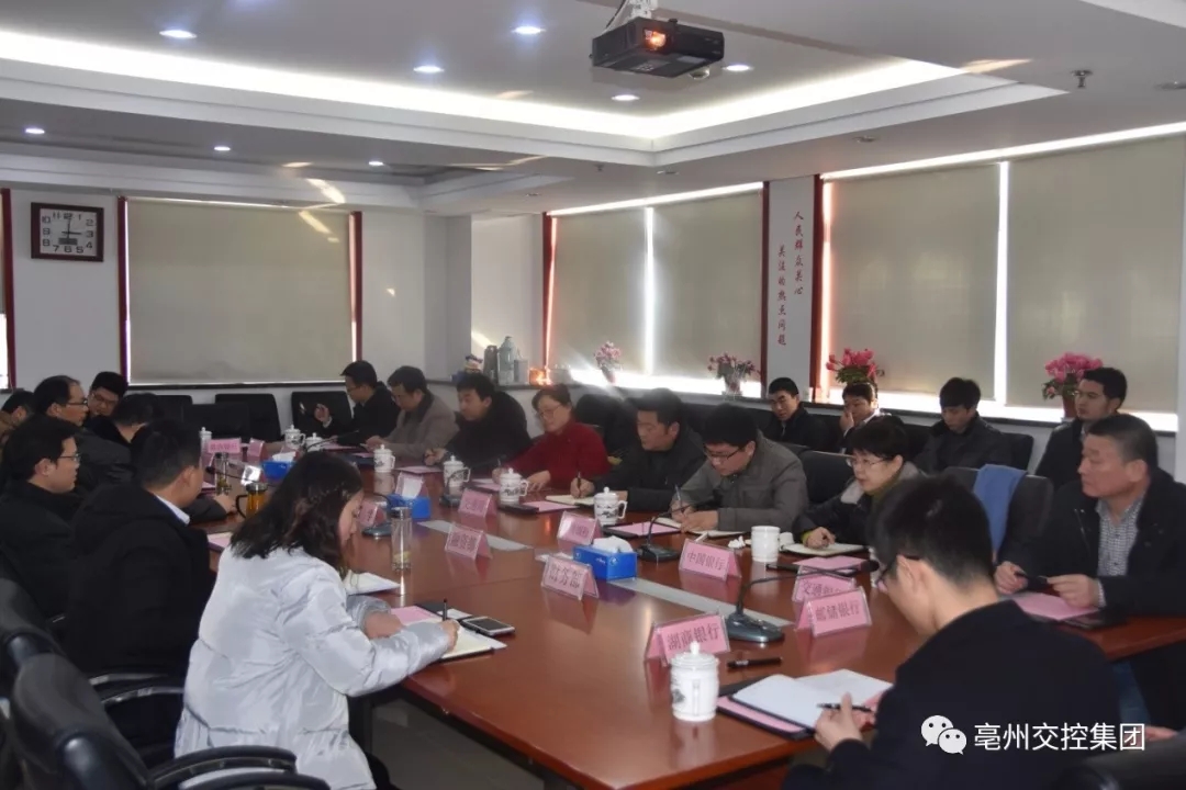 1月30日下午3點,集團在八樓會議室召開亳州交控集團銀企座談會。會議邀請了市交通局、市國資委及徽商銀行、工商銀行、中國銀行、農(nóng)業(yè)銀行、建設銀行、農(nóng)業(yè)發(fā)展銀行、藥都銀行等10家銀行代表與會。