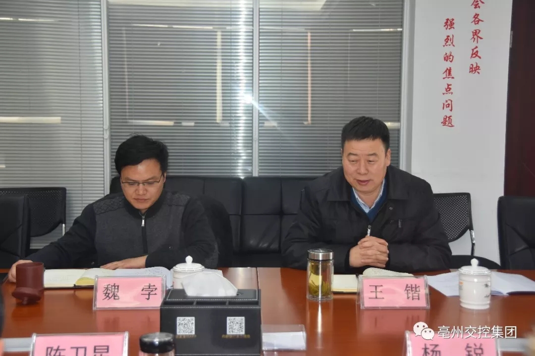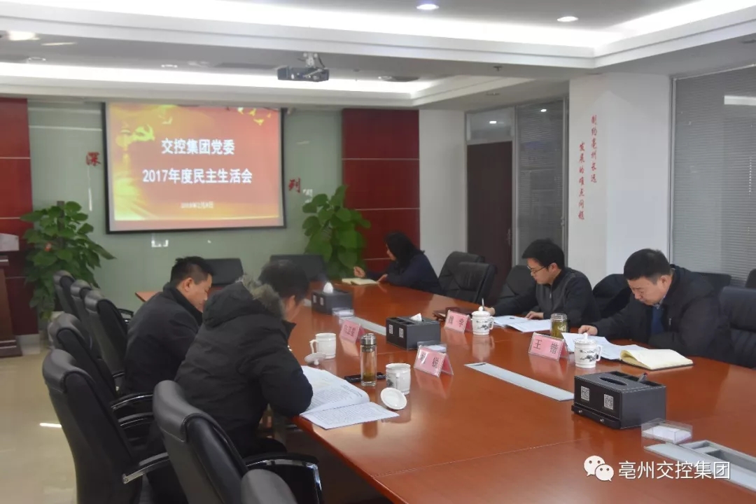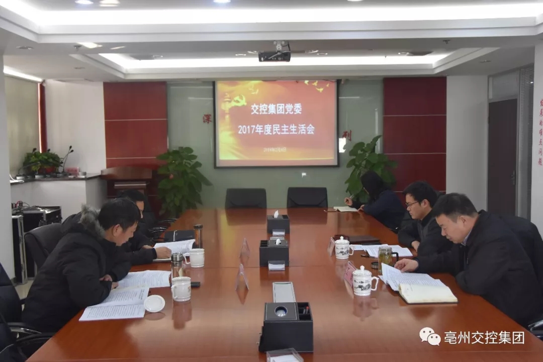 2月8日下午,交控集團(tuán)黨委召開2017年度民主生活會。集團(tuán)黨委書記、董事長王鍇同志主持會議,市委督導(dǎo)組第七組陳衛(wèi)星同志、楊銳同志到會指導(dǎo),集團(tuán)黨委領(lǐng)導(dǎo)班子成員參加會議。