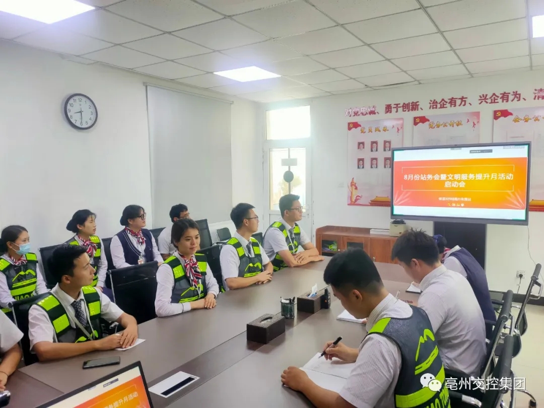 8月4日上午,309收費(fèi)站召開8月份站務(wù)會(huì)暨“文明服務(wù)提升月”活動(dòng)啟動(dòng)會(huì),就近期收費(fèi)工作重點(diǎn)及“文明服務(wù)提升月”活動(dòng)作出部署。收費(fèi)站全體人員參加會(huì)議。