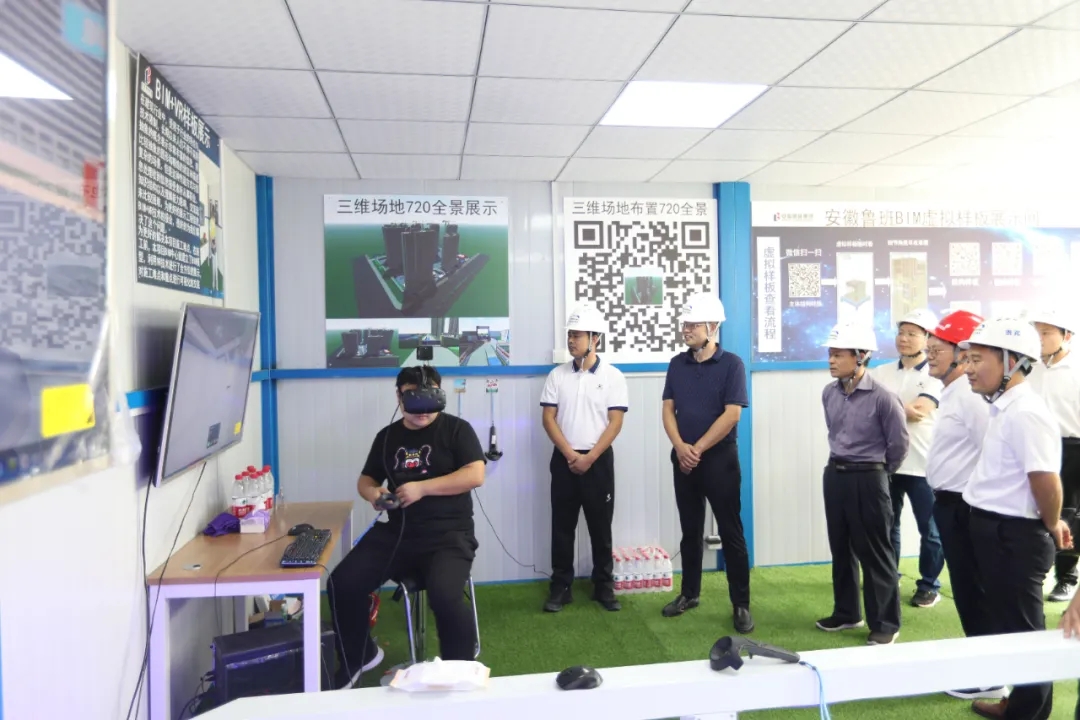 在項目工地,劉超認真查看項目建設(shè)情況,詳細了解項目建設(shè)進度,實地查看施工質(zhì)量,觀摩VR智慧工地體驗區(qū)。