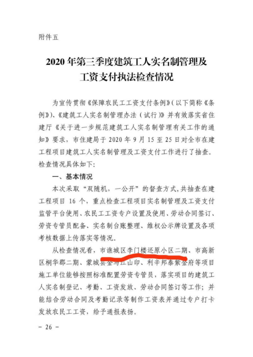 近日,安徽通廬置業(yè)有限責(zé)任公司開(kāi)發(fā)建設(shè)的李門(mén)樓還原小區(qū)(二期)建設(shè)項(xiàng)目建筑工人實(shí)名制及工資支付管理工作措施落實(shí)到位,榮獲亳州市住建局通報(bào)表?yè)P(yáng)。