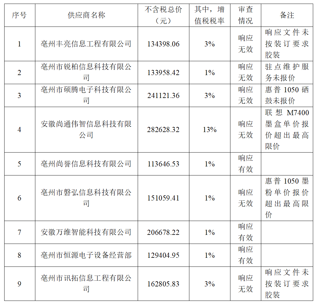 第二成交候選人:亳州市恒源電子設(shè)備經(jīng)營部