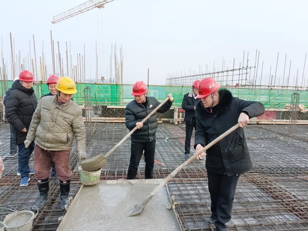 1月18日上午8時(shí)16分,亳州高鐵南站金融商務(wù)中心項(xiàng)目舉行4號(hào)樓封頂儀式,項(xiàng)目各參建單位代表共同見證封頂時(shí)刻。