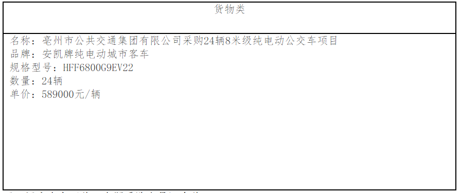 亳州市公共交通集團(tuán)有限公司采購24輛8米級(jí)純電動(dòng)公交車項(xiàng)目