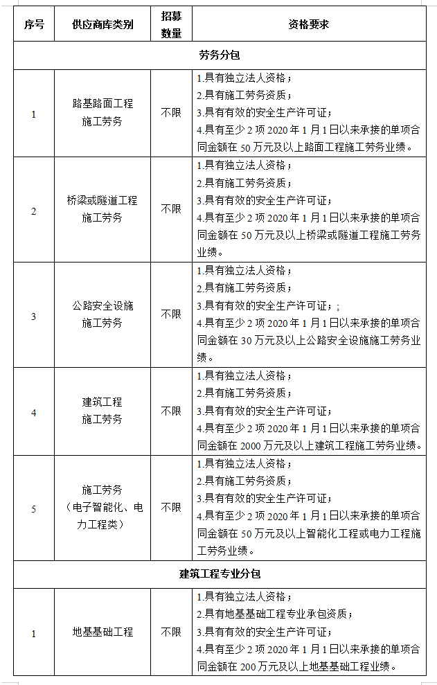 征集項目:亳州交控集團(tuán)工程類供應(yīng)商庫