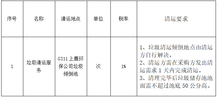 (三)交貨期:清運(yùn)方需在采購方發(fā)出清運(yùn)需求1天內(nèi)完成清運(yùn)。
