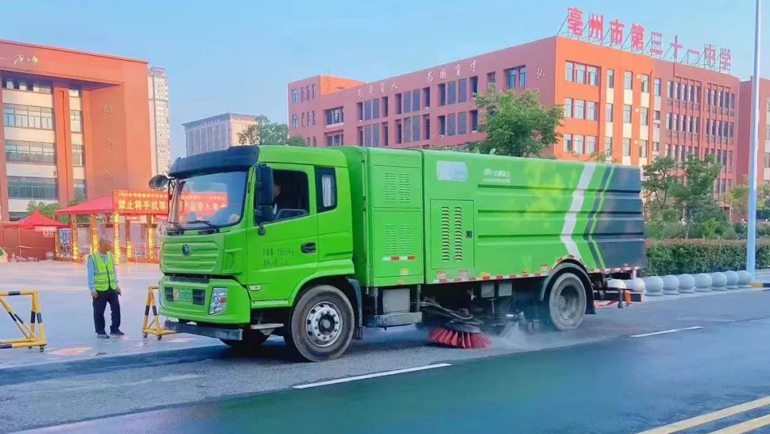 為營造清潔、舒適、安靜的考試環(huán)境,上善環(huán)保公司所有環(huán)衛(wèi)作業(yè)車輛提前上路,實施“消音”作業(yè),考點周邊作業(yè)時禁止鳴笛,灑水車關(guān)閉提示音、減速慢行。環(huán)衛(wèi)片區(qū)經(jīng)理提前排查考點周邊衛(wèi)生情況,組織環(huán)衛(wèi)工人對垃圾桶、果殼箱及周邊地面進行深度保潔,考試期間增派保潔人員,及時撿拾煙頭、廢紙、小廣告等,確保考場周邊清爽潔凈。
