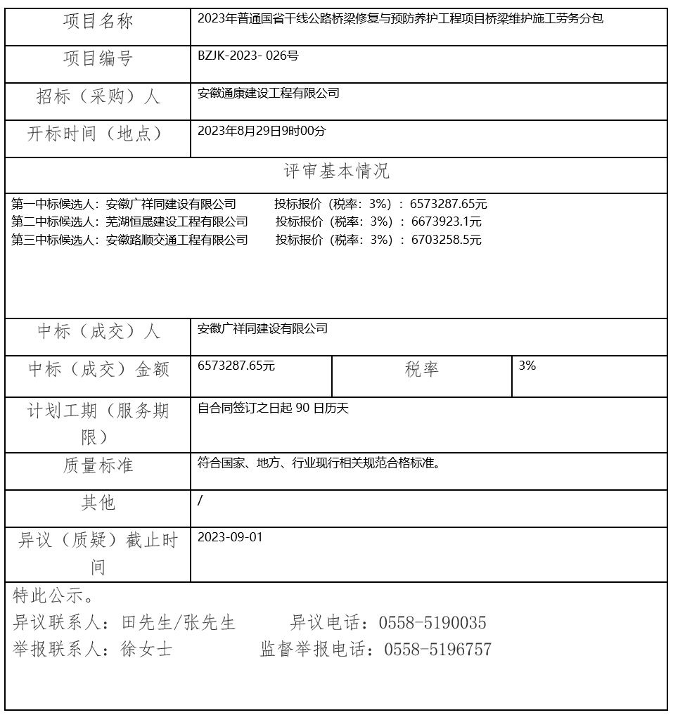 2023年普通國省干線公路橋梁修復(fù)與預(yù)防養(yǎng)護(hù)工程項(xiàng)目橋梁維護(hù)施工勞務(wù)分包項(xiàng)目結(jié)果公示