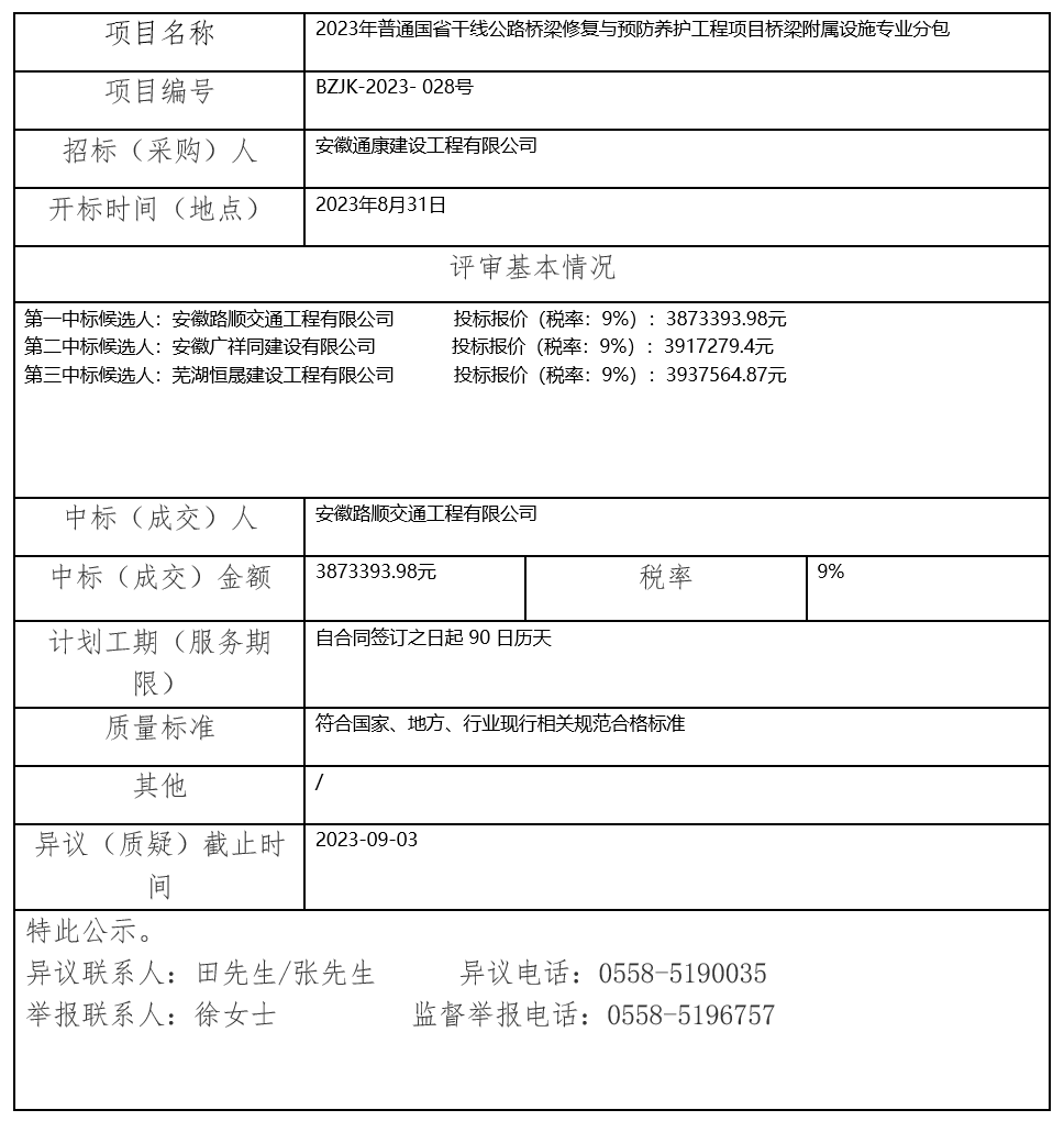 2023年普通國(guó)省干線公路橋梁修復(fù)與預(yù)防養(yǎng)護(hù)工程項(xiàng)目橋梁附屬設(shè)施專業(yè)分包結(jié)果公示