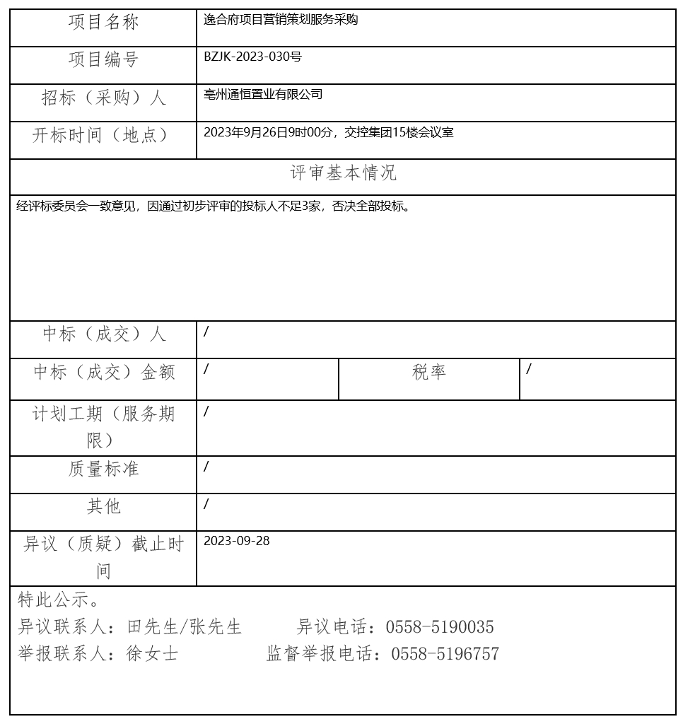 逸合府項目營銷策劃服務(wù)采購中標結(jié)果公示