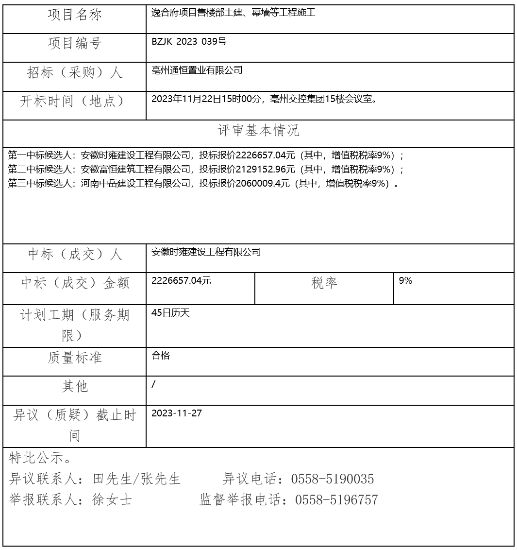 逸合府項(xiàng)目售樓部土建、幕墻等工程施工中標(biāo)(成交)結(jié)果公示