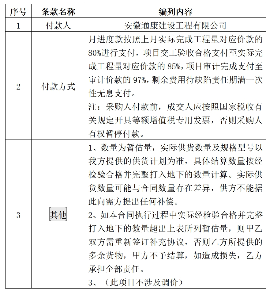 說明:具體合同條款及格式由采購(gòu)人與成交人在不違背詢價(jià)公告和響應(yīng)文件承諾的條件下友好協(xié)商簽訂。