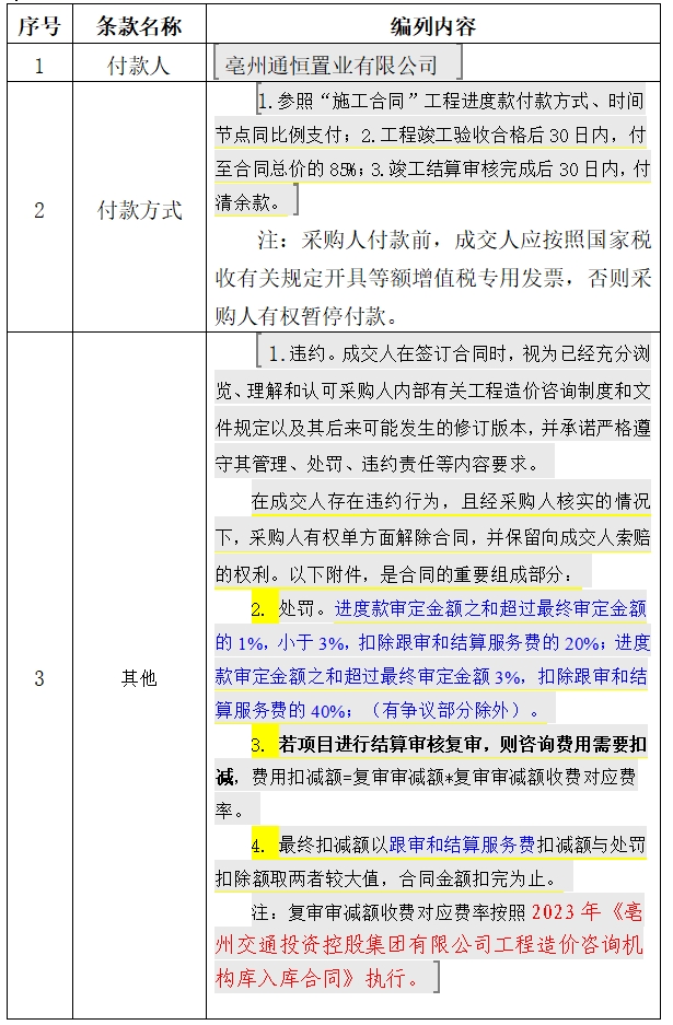 (五)最高限價(含稅):以安徽省物價局、建設(shè)廳《關(guān)于重新制定工程造價咨詢服務(wù)收費項目及標(biāo)準(zhǔn)的通知》(皖價服[2007]86號)文件中第七項“施工全過程造價控制價”規(guī)定標(biāo)準(zhǔn)為基數(shù),報價不得高于40%,不采用“差額定率累進(jìn)法”計算。。供應(yīng)商按固定費率報價。報價超出限價或為可能影響合同履約的異常低價的,按無效響應(yīng)處理;報價應(yīng)包括為完成本采購項目各階段工作內(nèi)容以及后期服務(wù)所需的全部費用及稅金;不含稅價格不因國家稅率變化而改變,在合同履行期間,如遇國家稅率調(diào)整,則價稅合計的價格應(yīng)相應(yīng)調(diào)整,以開具發(fā)票的時間為準(zhǔn)。