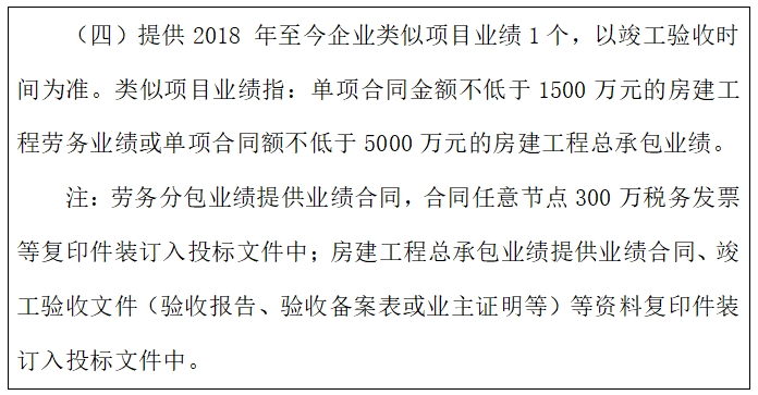 1.關(guān)于招標(biāo)文件第一章招標(biāo)公告“三、投標(biāo)人資格要求:(四)提供2018 年至今企業(yè)類似項(xiàng)目業(yè)績1個(gè),以竣工驗(yàn)收時(shí)間為準(zhǔn)。類似項(xiàng)目業(yè)績指:單項(xiàng)合同金額不低于1500萬元的房建工程勞務(wù)業(yè)績”,房建工程總承包業(yè)績中包含勞務(wù),且金額滿足 1500萬;是否符合招標(biāo)文件要求?投標(biāo)時(shí)需要提供哪些證明材料及總包合同額要求?