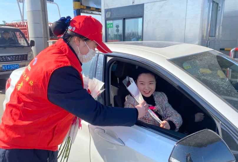 “您好!送您一朵鮮花,祝您三八節(jié)快樂!”在309收費站收費廣場和站區(qū)內(nèi),“紅色驛站”志愿者們將精心準備的節(jié)日花朵帶到一線,送給堅守一線的女職工和過往的女司乘朋友,給大家送去節(jié)日的祝福及溫馨的問候。