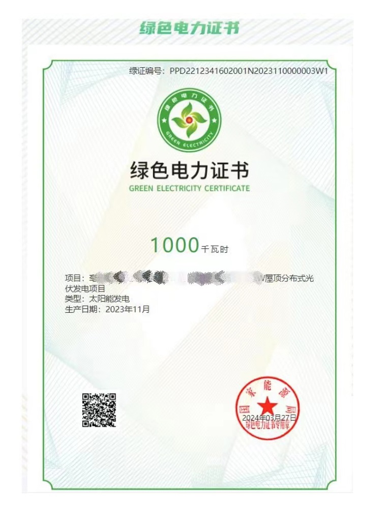 綠證是綠色電力證書的簡稱,是可再生能源發(fā)電企業(yè)所發(fā)綠色電力的“電子身份證”,每一張綠證的產(chǎn)生,就意味著有1000度(1MWh)可再生能源產(chǎn)生的電力已經(jīng)上網(wǎng)或就地消納,精確反映企業(yè)使用的綠色電力規(guī)模和來源,對企業(yè)減少外貿(mào)出口碳關(guān)稅、完成碳配額指標(biāo)、提升國際和國內(nèi)市場競爭力具有重要作用。