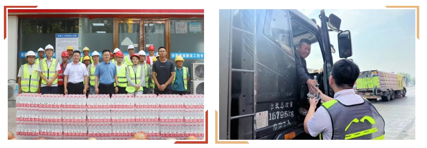 開展夏季送清涼活動15次,為員工發(fā)放了西瓜、純凈水、涼茶、清涼油、藿香正氣水等防暑降溫物品與藥品,在項目現(xiàn)場為一線工人提供潔凈用水以及休息場所,切實保障高溫天氣下作業(yè)人員的安全健康。