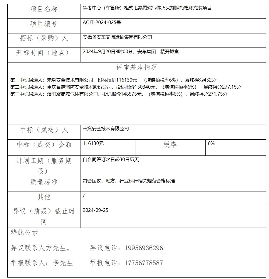 駕考中心(車管所)柜式七氟丙烷氣體滅火劑鋼瓶檢測充裝項目中標(成交)結(jié)果公示