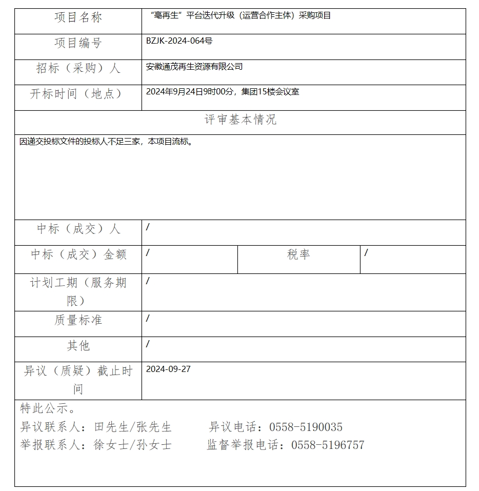 “亳再生”平臺迭代升級(運營合作主體)采購項目中標(biāo)(成交)結(jié)果公示