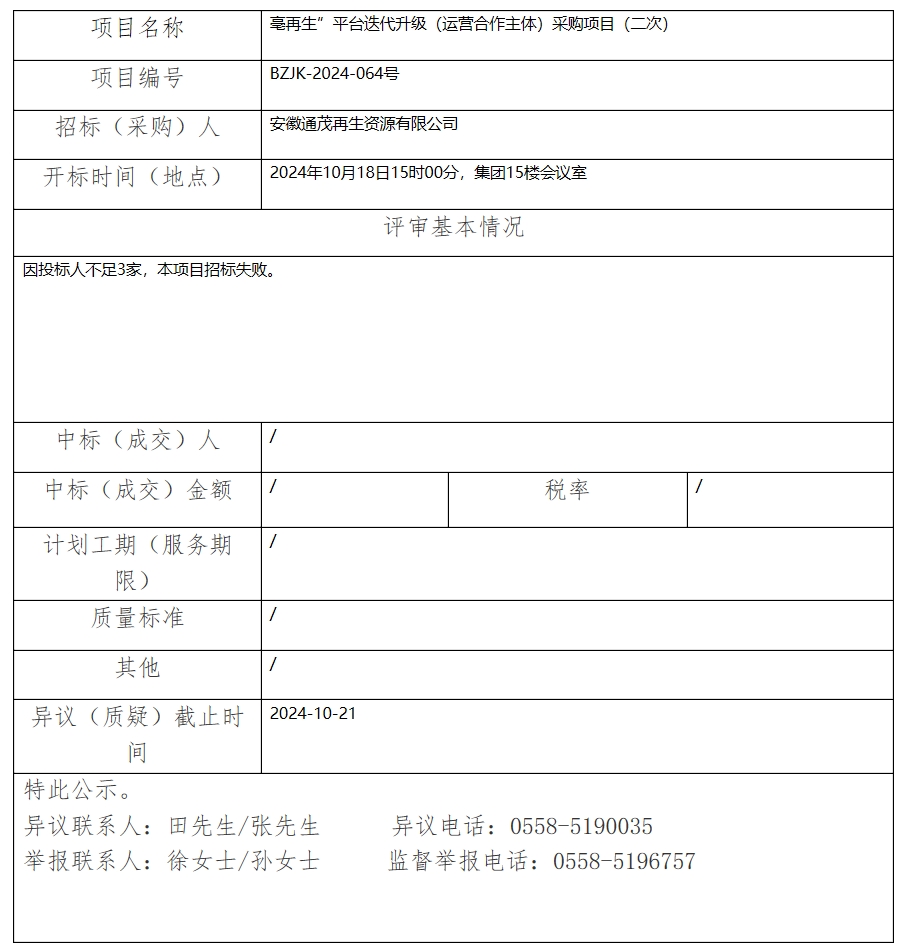 亳再生”平臺(tái)迭代升級(jí)(運(yùn)營(yíng)合作主體)采購(gòu)項(xiàng)目(二次)中標(biāo)(成交)結(jié)果公示