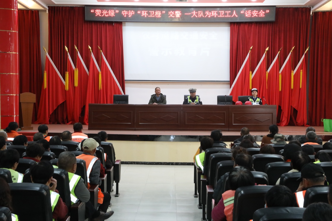 為提高一線環(huán)衛(wèi)工人的交通安全意識(shí),4月3日上午,上善環(huán)保公司聯(lián)合交警一大隊(duì)湯陵中隊(duì)組織開展“熒光綠”守護(hù)“環(huán)衛(wèi)橙”交通安全培訓(xùn)活動(dòng)。