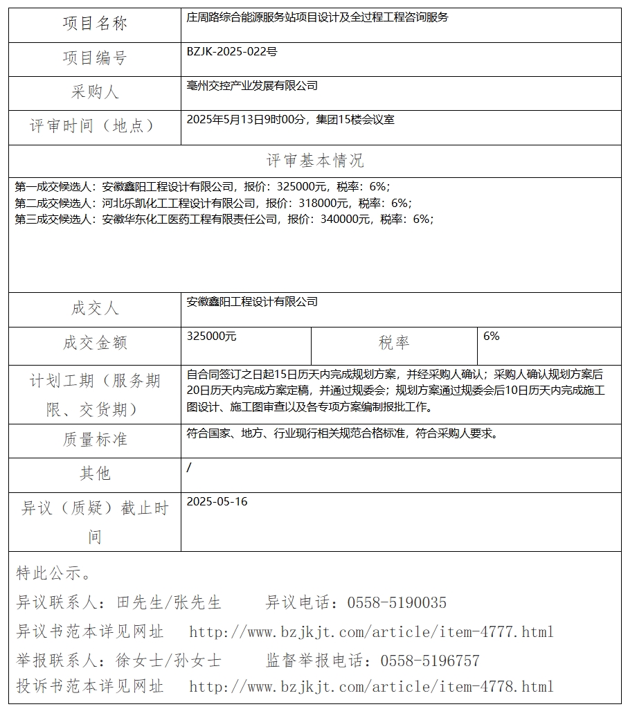 莊周路綜合能源服務(wù)站項(xiàng)目設(shè)計(jì)及全過程工程咨詢服務(wù)成交結(jié)果公示