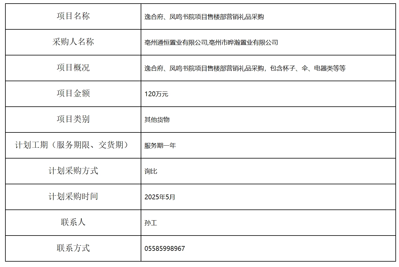 逸合府、鳳鳴書院項目售樓部營銷禮品采購計劃