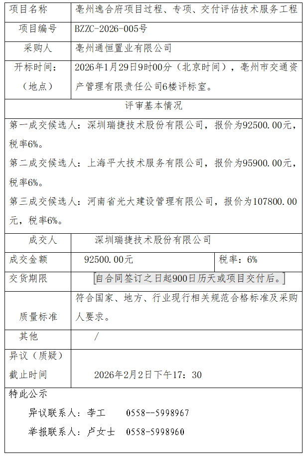 亳州逸合府項(xiàng)目過程、專項(xiàng)、交付評(píng)估技術(shù)服務(wù)工程成交結(jié)果公示