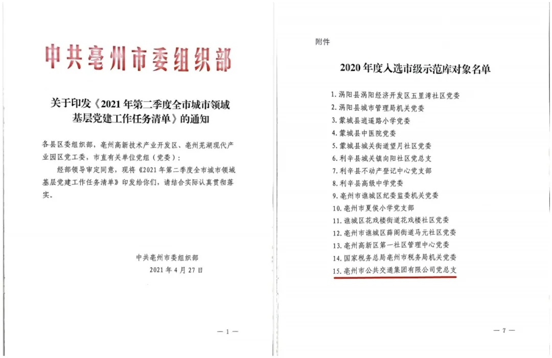 近日,市委組織部確定一批城市領(lǐng)域“領(lǐng)航”計(jì)劃示范庫(kù)名單,亳州公交集團(tuán)黨總支成功入選2020年度“領(lǐng)航”計(jì)劃市級(jí)示范庫(kù)。 近年來(lái),亳州公交黨總支充分發(fā)揮黨組織的領(lǐng)導(dǎo)核心和政治核心作用,按照全面從嚴(yán)治黨要求,扎實(shí)推進(jìn)黨的建設(shè)各方面工作有序、深入...