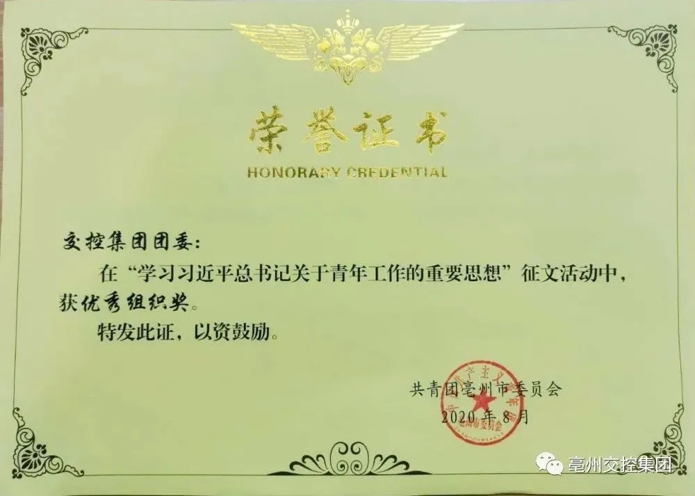 ????????近日,團(tuán)市委主辦的"學(xué)習(xí)習(xí)近平總書記關(guān)于青年工作的重要思想"征文活動(dòng)評(píng)選結(jié)果揭曉,集團(tuán)5篇作品獲獎(jiǎng),集團(tuán)團(tuán)委獲"優(yōu)秀組織獎(jiǎng)"。