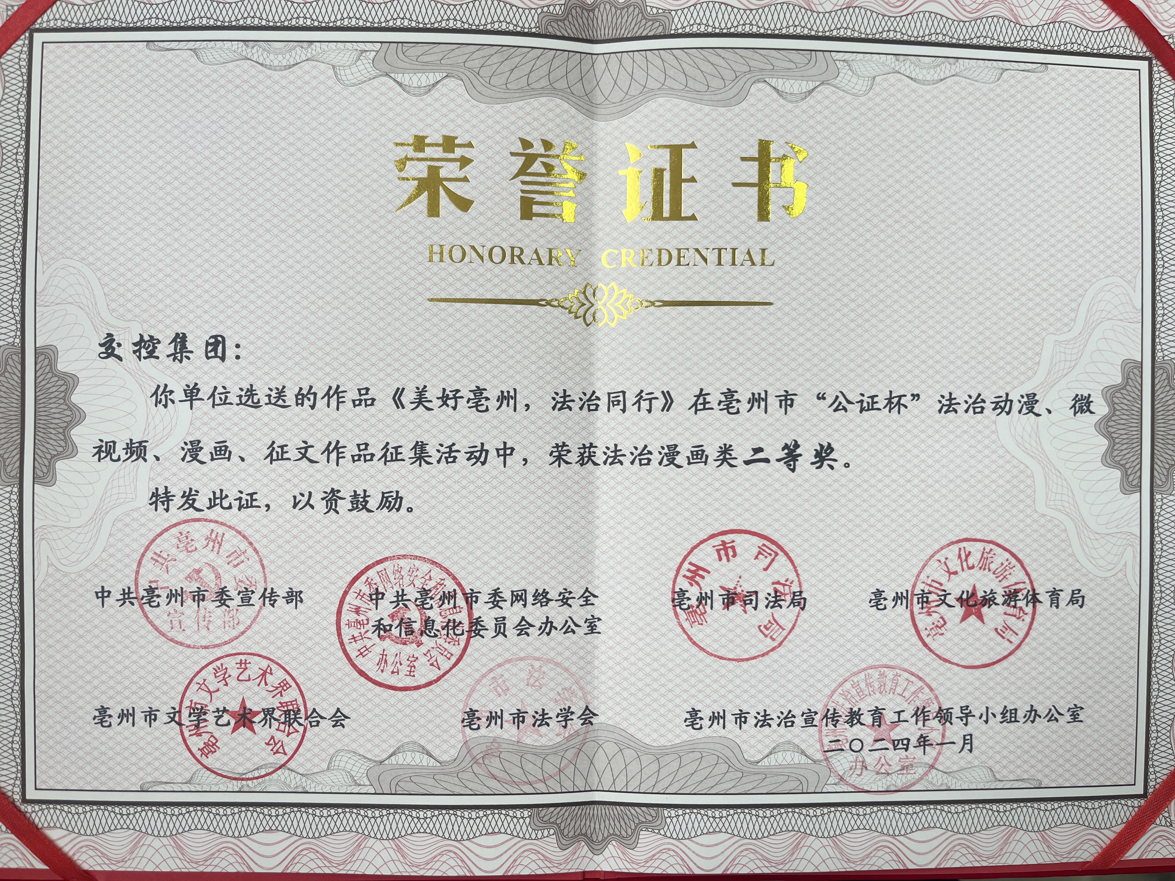 近日,亳州市委宣傳部、市委網(wǎng)信辦、市司法局、市文旅體局、市文聯(lián)、市法學(xué)會(huì)、市法宣辦聯(lián)合發(fā)文通報(bào)了亳州市“公正杯”法治動(dòng)漫、微視頻、漫畫(huà)、征文作品征集活動(dòng)獲獎(jiǎng)情況,交控集團(tuán)參賽作品《美好亳州法治同行》漫畫(huà)在全市245部篇參賽作品中脫穎而出,榮獲漫...